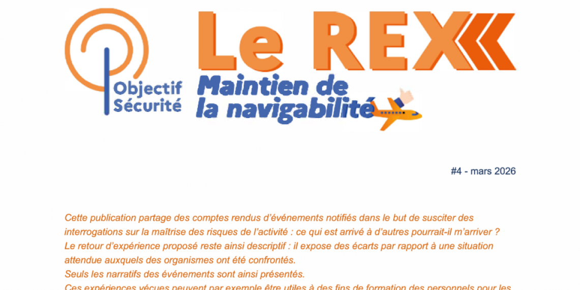 OSAC et la Direction de la Sécurité de l'Aviation Civile (DSAC) ont publié le quatrième numéro de leur bulletin de retour d'expérience (REX) dédié au maintien de la navigabilité.