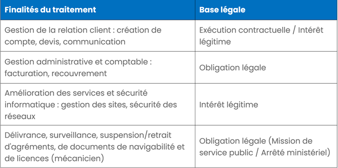 Le tableau ci-dessous détaille les finalités de nos traitements.